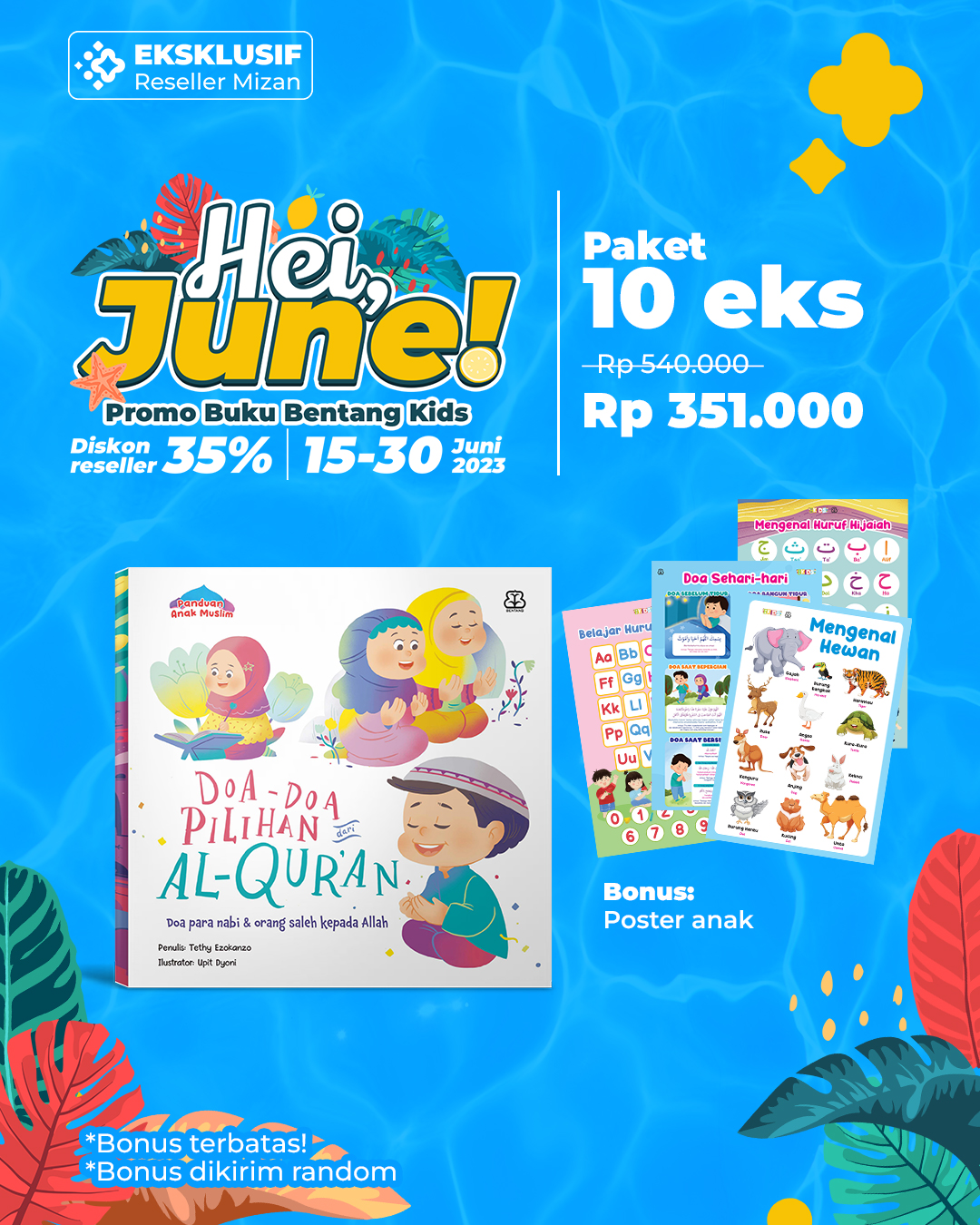 PAKET 10 EKS - PROMO HEY JUNE DOA-DOA PILIHAN DARI AL-QURAN BONUS POSTER ANAK MENGENAL HURUF HIJAIYAH